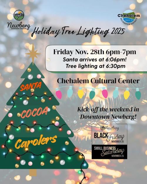 Chehalem Park and Recreation District, together with the Newberg Downtown Coalition, once again host Newberg's annual Holiday Tree Lighting event, a free, outdoor community event for the whole family.