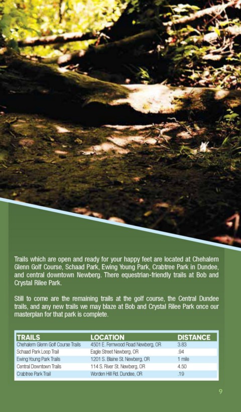and central downtown Newberg. There equestrian-friendly trails at Bob and